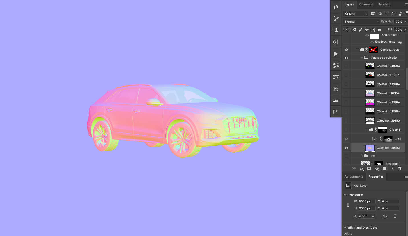 Edição com arquivo EXR multicamada — controle total de cada elemento, luz, sombra, reflexos e materiais.